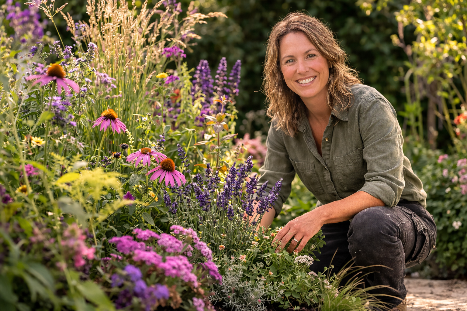 Die Kombination aus Duft, weichen Blütenfarben und feinen Gräsern schafft ein ruhiges, stimmiges Gesamtbild.